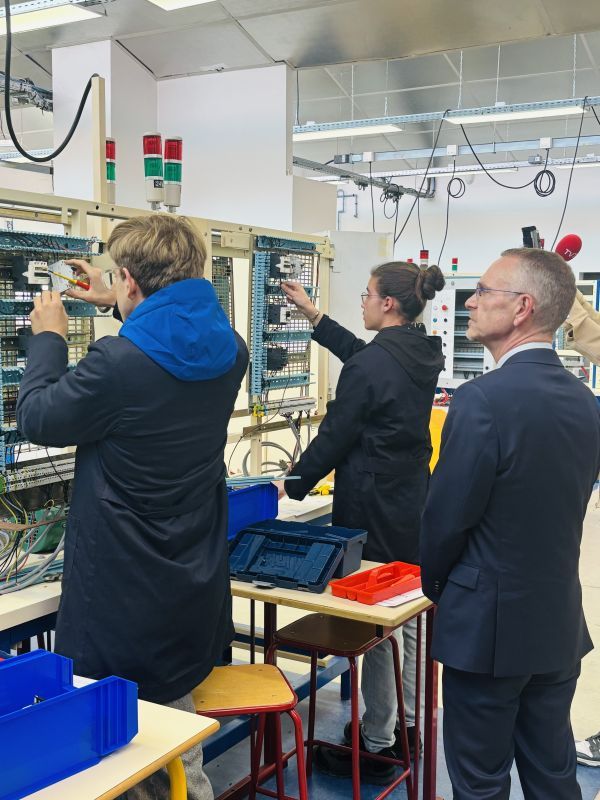 Le 27 mars, le Lycée des Métiers de Langon a accueilli M. Jean-Marc Huart, nouveau Recteur de l'Académie de Bordeaux, pour une visite mettant en avant le lycée professionnel comme filière d'excellence. Accompagné de son cabinet et d’élus locaux, il a échangé avec les adultes du lycée, les élèves et des représentants économiques. La délégation a visité les ateliers et découvert les formations, y compris celles en partenariat avec le GRETA-CFA d’Aquitaine. Plusieurs projets structurants ont été valorisés, comme l’ouverture à l’international et la rénovation des infrastructures. En salle polyvalente, le parcours différencié en terminale a été présenté, offrant aux élèves un choix entre insertion professionnelle et poursuite d’études. Les échanges avec les entreprises ont souligné les collaborations en faveur de la formation et de l’emploi. Le Recteur a salué l’engagement des enseignants et des entreprises, affirmant son soutien au renforcement du lycée professionnel.